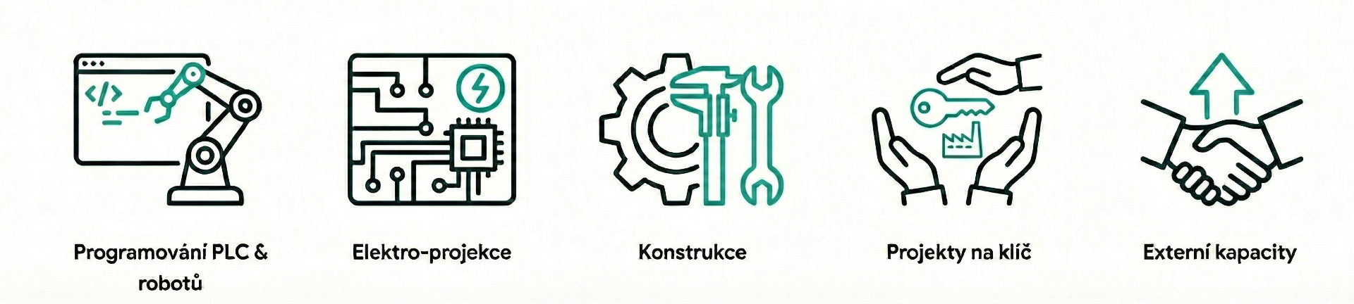 - Dodáváme externí kapacity - PLC programátory, robotiky, konstruktéry, elektro-projektanty, elektro-instalatéry